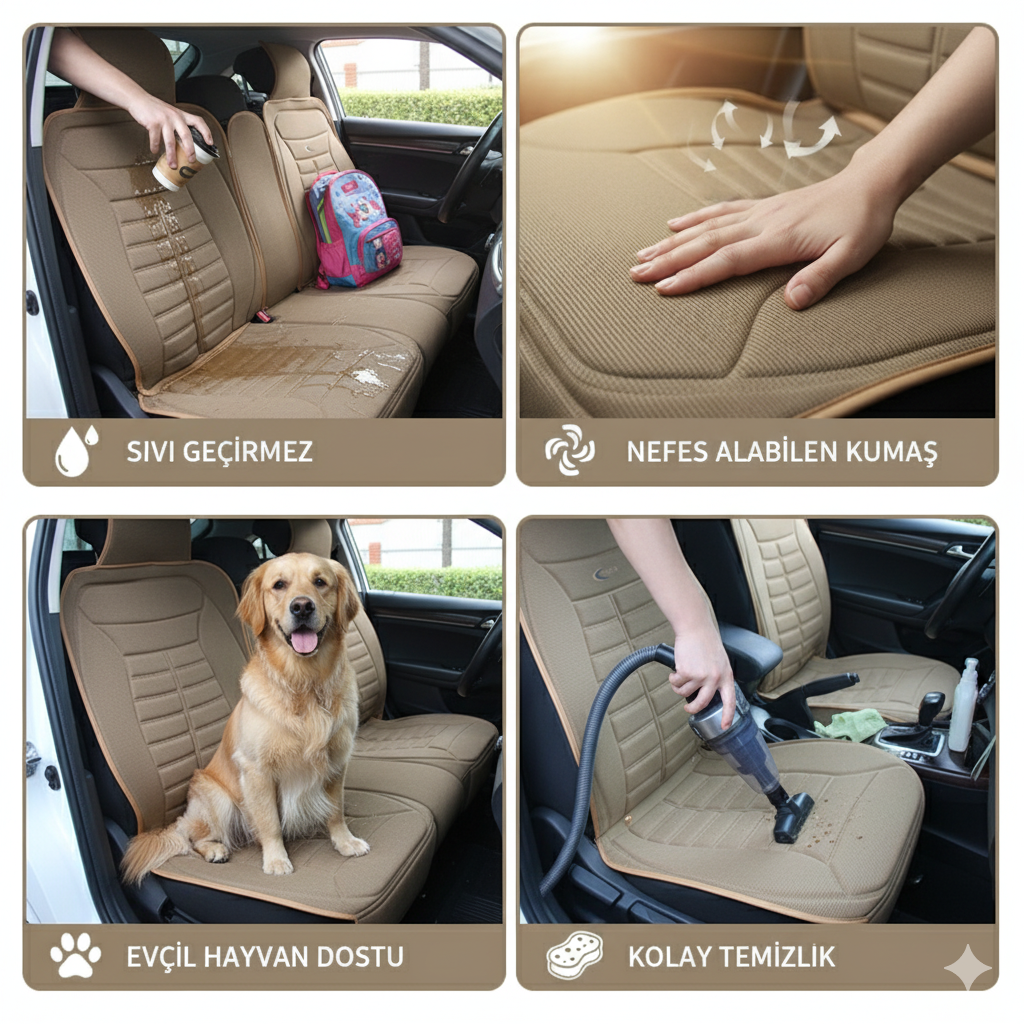 * Cepli modeldir, ön iki takımın kafa kısmının arkasında ve oturma yerlerinin ayak bölgesinde cepleri bulunmaktadır.
