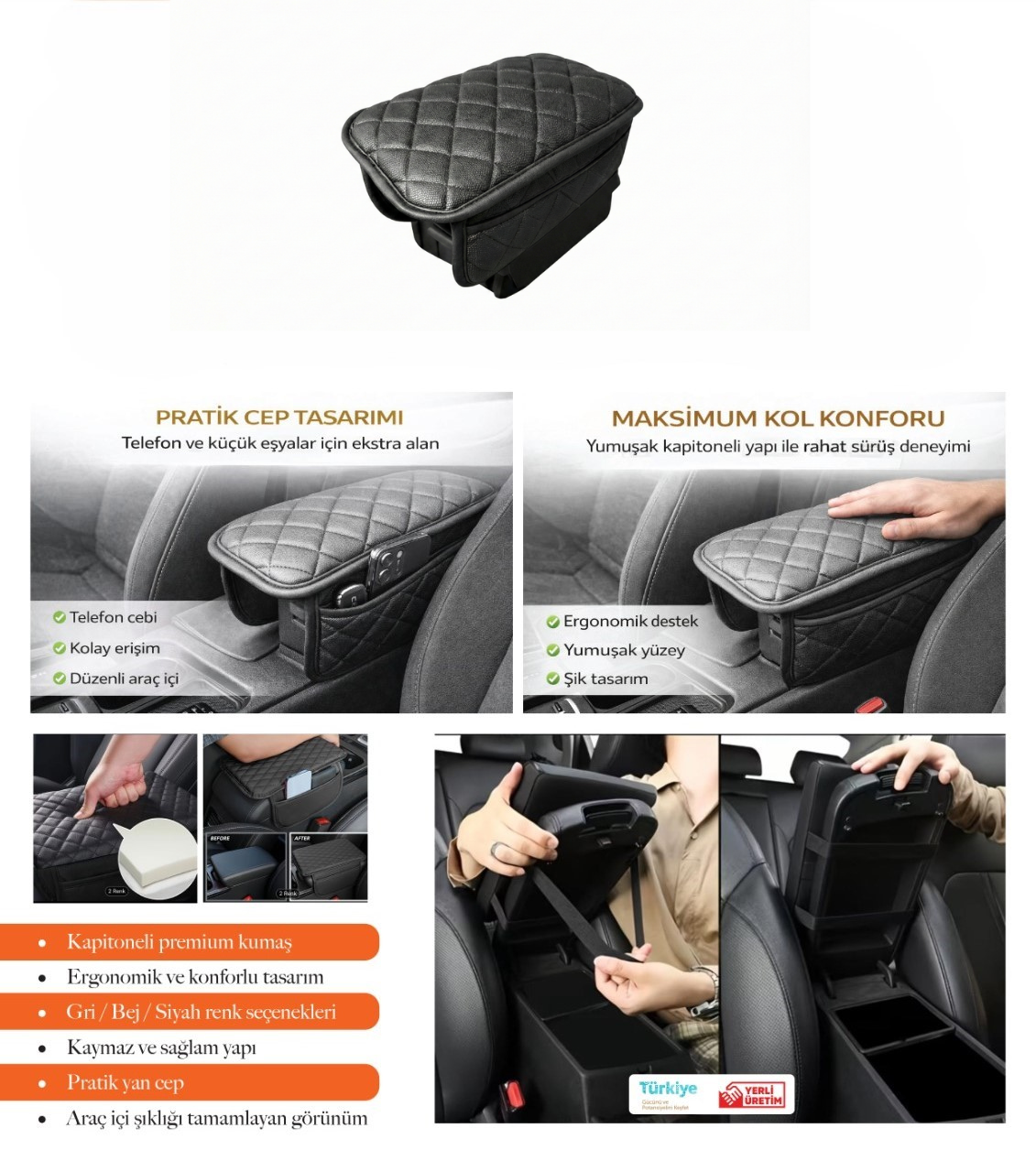 Aracınızın iç tasarımına şıklık katarken sürüş konforunuzu en üst seviyeye çıkaran Premium Kapitoneli Kolçak Minderi, ergonomik yapısı ve pratik depolama çözümleriyle yolculuklarınızı daha keyifli hale getirir.