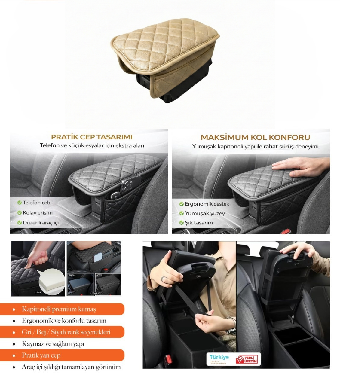 Aracınızın iç tasarımına şıklık katarken sürüş konforunuzu en üst seviyeye çıkaran Premium Kapitoneli Kolçak Minderi, ergonomik yapısı ve pratik depolama çözümleriyle yolculuklarınızı daha keyifli hale getirir.